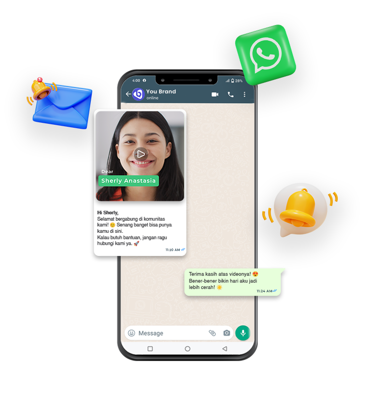 Ubah pesan biasa jadi pengalaman personal. Bikin pelanggan lebih dekat, loyal dan mudah diingat!